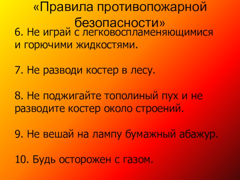 6. Не играй с легковоспламеняющимися и горючими жидкостями.