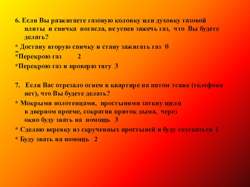 7. Если Вас отрезало огнем в квартире на пятом этаже (телефона нет), что Вы будете делать?