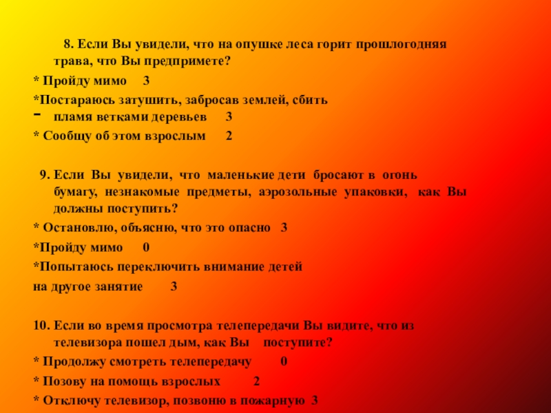 9. Если Вы увидели, что маленькие дети бросают в огонь
