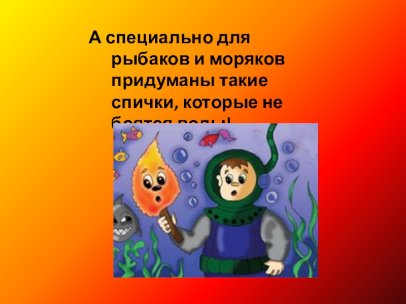 Слайд 12А специально для рыбаков и моряков придуманы такие спички, которые не