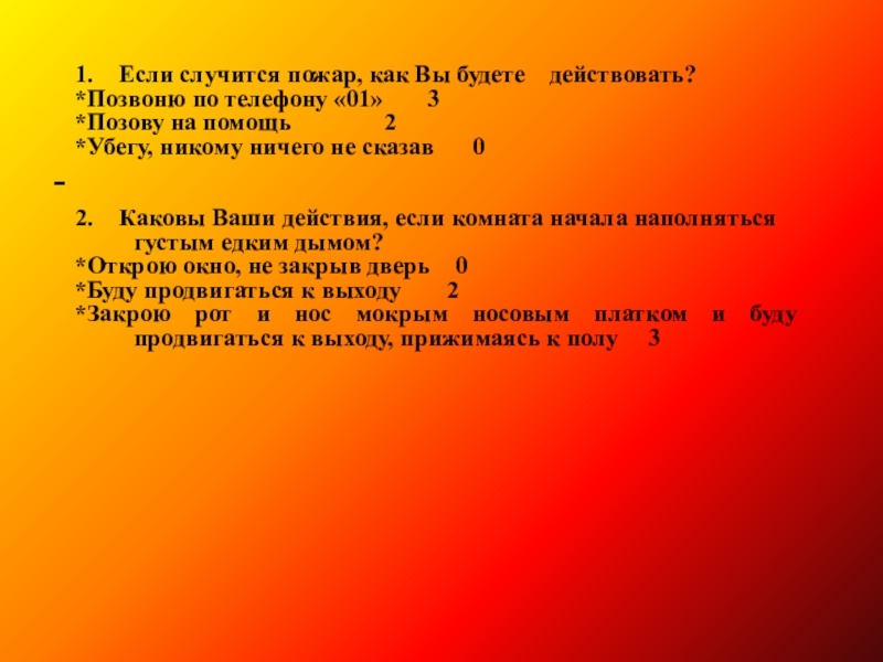 2. Каковы Ваши действия, если комната начала наполняться густым едким дымом?
