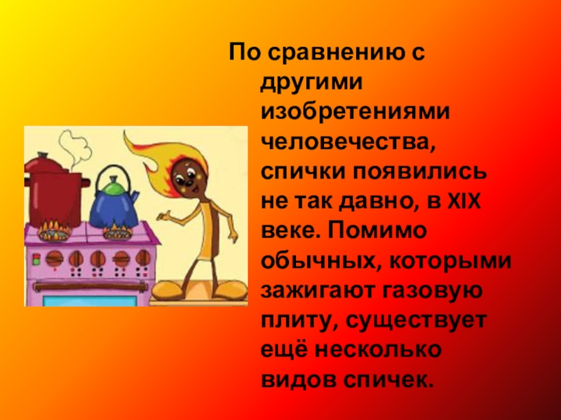 Слайд 10По сравнению с другими изобретениями человечества, спички появились не так давно,
