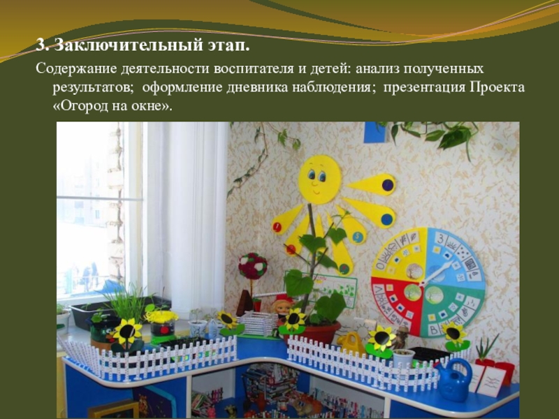 дневника наблюдения; презентация Проекта «Огород на окне».