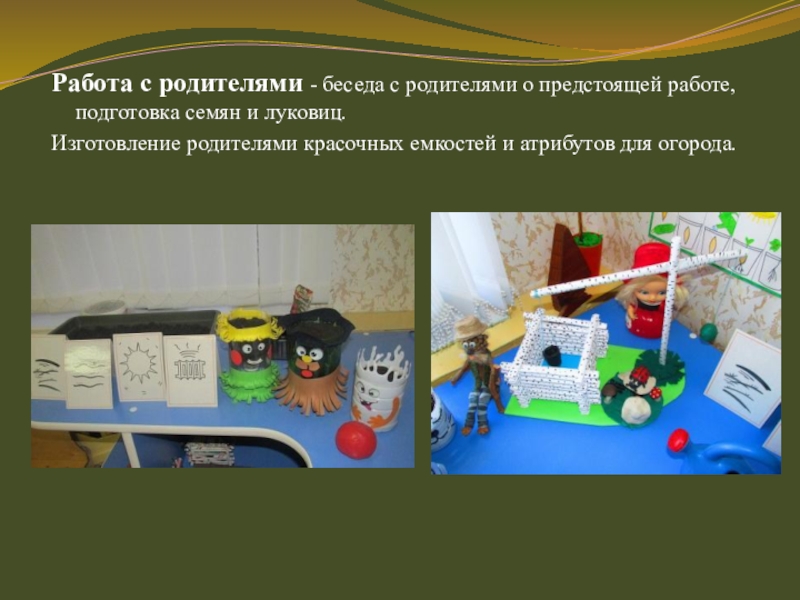Изготовление родителями красочных емкостей и атрибутов для огорода.