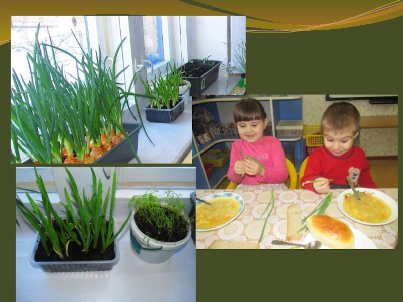 установка на светлое место; - полив; - рыхление. - оформление огорода на окне; - наблюдение за первыми всходами и дальнейшим развитием; - знакомство с моделью строения растения; - ведение дневника наблюдения; - опыт: лук - в темном месте без полива, лук - на солнечном месте с поливом; - отражение результата в художественно - творческой деятельности. - чтение детской литературы про овощи; - отгадывание загадок про овощи; - дидактические игры: «Что сначала, а что потом?», «Собери из частей целое», «Чудесный мешочек» и др.