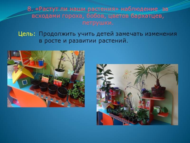 Продолжить учить детей замечать изменения в росте и развитии растений.