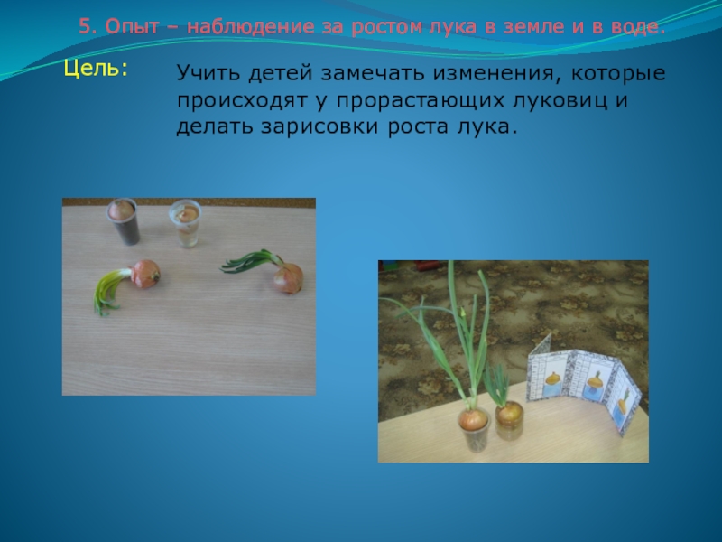 Учить детей замечать изменения, которые происходят у прорастающих луковиц и делать зарисовки роста лука.