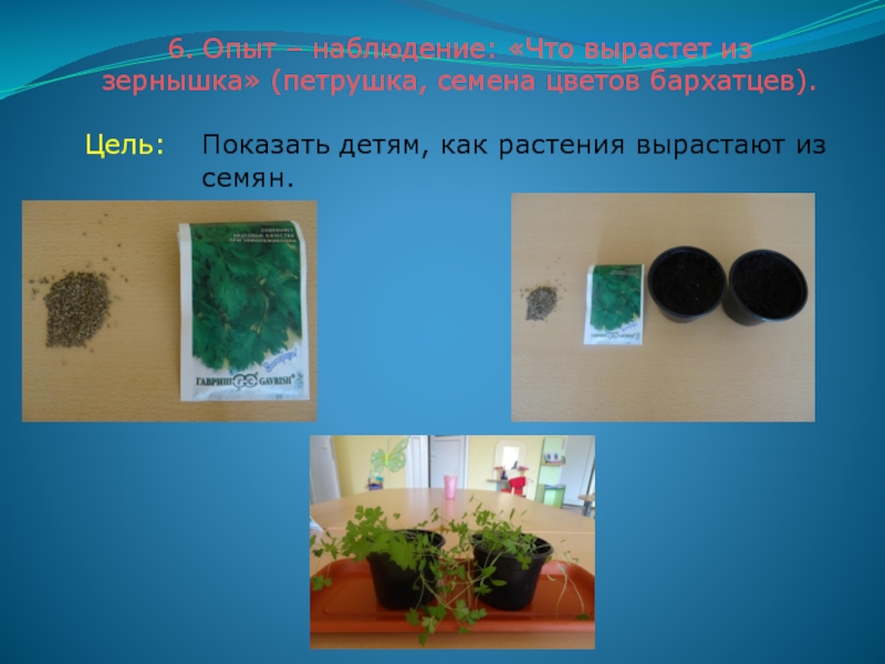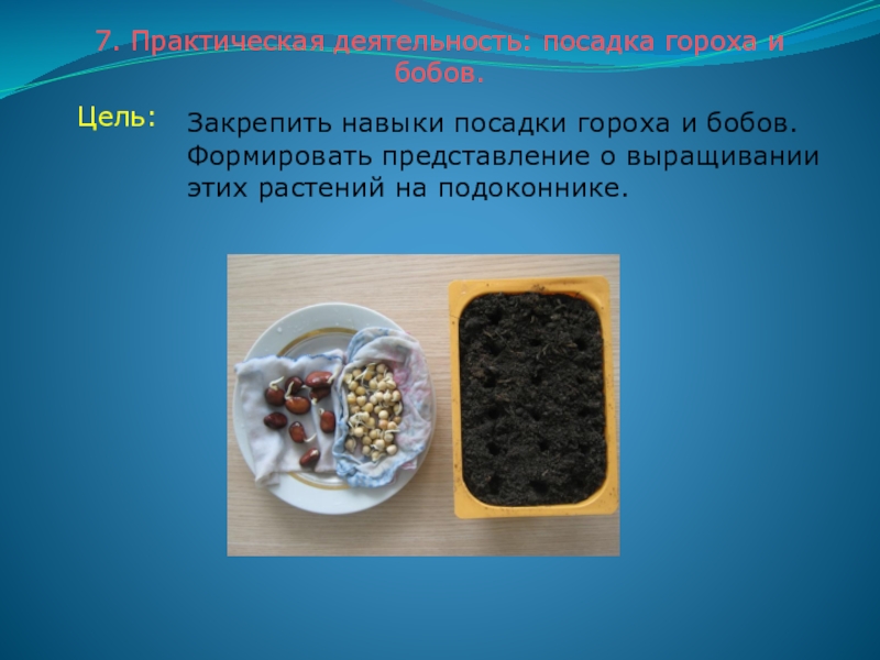 Продолжить знакомить детей с особенностями выращивания культурных растений (лук, петрушка, горох, бобы, цветы);