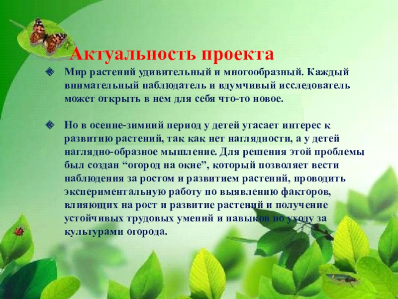 Мини - проект « Огород на подоконнике.