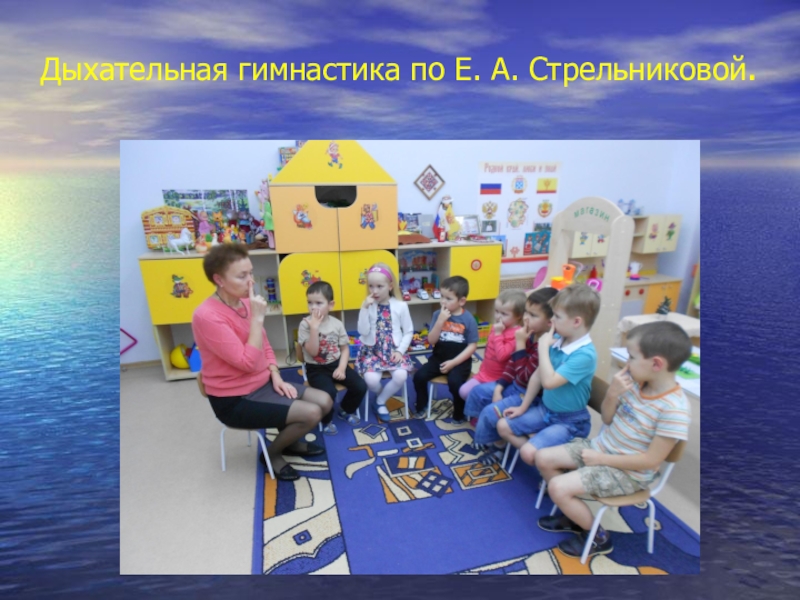 Слайд 25 Дыхательная гимнастика по Е. А. Стрельниковой.