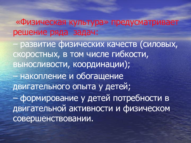 Слайд 6 «Физическая культура» предусматривает решение ряда задач: