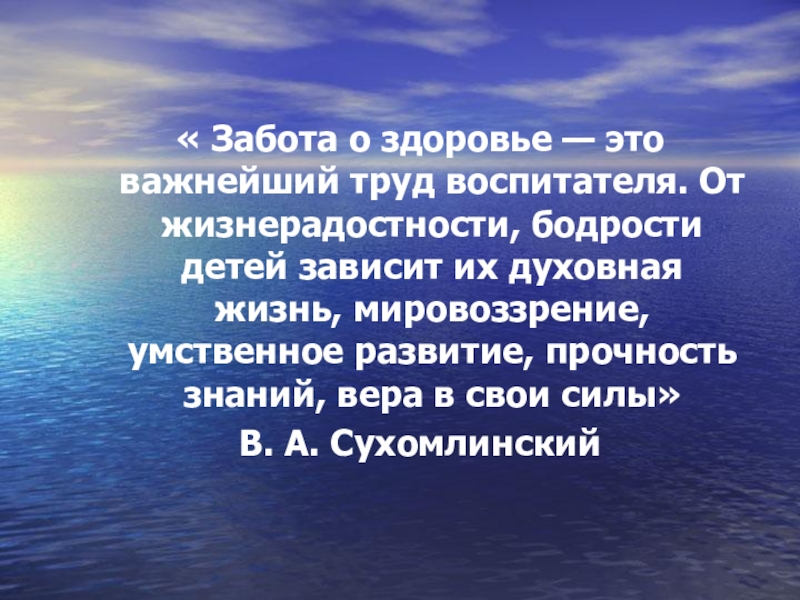 « Забота о здоровье — это важнейший труд воспитателя. От жизнерадостности,