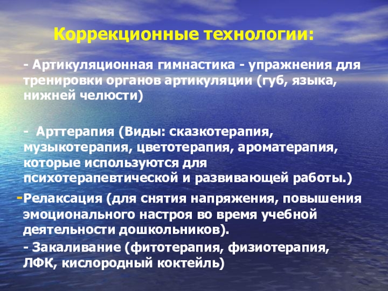 Слайд 17 Коррекционные технологии: