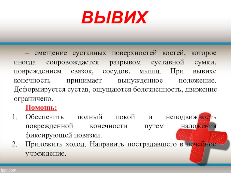 повреждением связок, сосудов, мышц. При вывихе конечность принимает вынужденное положение. Деформируется сустав, ощущаются болезненность, движение ограничено.
