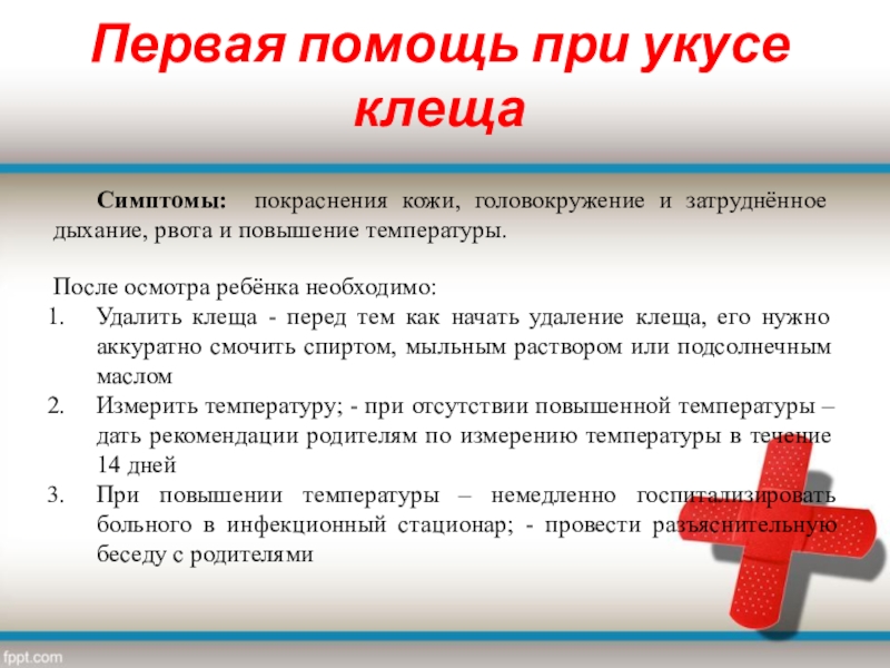 Измерить температуру; - при отсутствии повышенной температуры – дать рекомендации родителям по измерению температуры в течение 14 дней