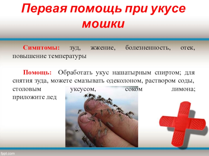 Обработать укус нашатырным спиртом; для снятия зуда, можете смазывать одеколоном, раствором соды, столовым уксусом, соком лимона;