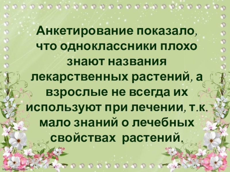 Слайд 20Анкетирование показало, что одноклассники плохо знают названия лекарственных растений, а взрослые