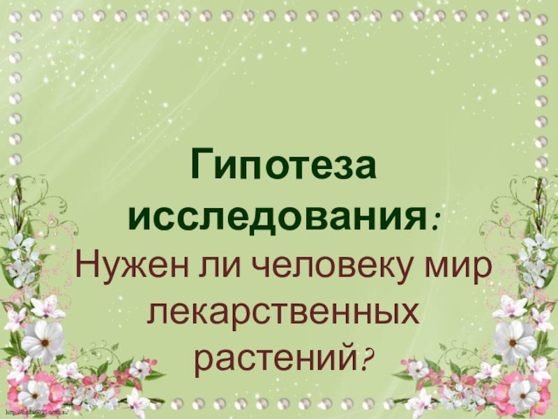 Слайд 6Гипотеза исследования: Нужен ли человеку мир лекарственных растений?