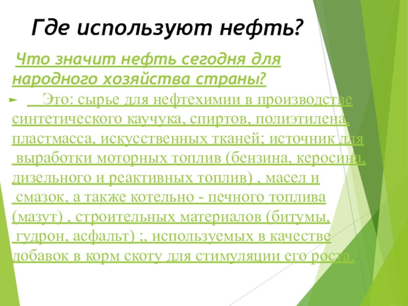 Путем перегонки из нефти получают различные продукты : бензин, реактивное топливо, керосин, дизельное топливо, мазут, смазочное масло, вазелин, различные краски, лаки, пластмассы.