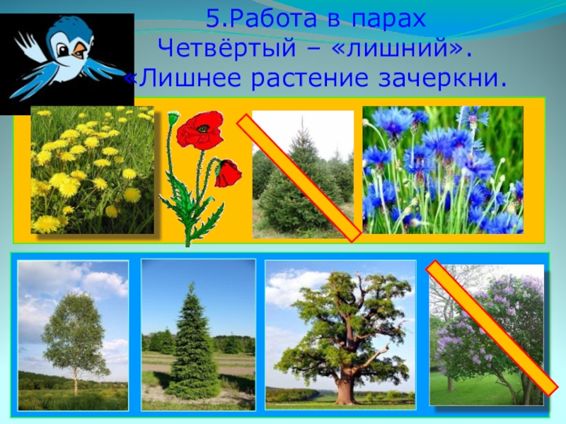 5.Работа в парахЧетвёртый – «лишний». «Лишнее растение зачеркни.