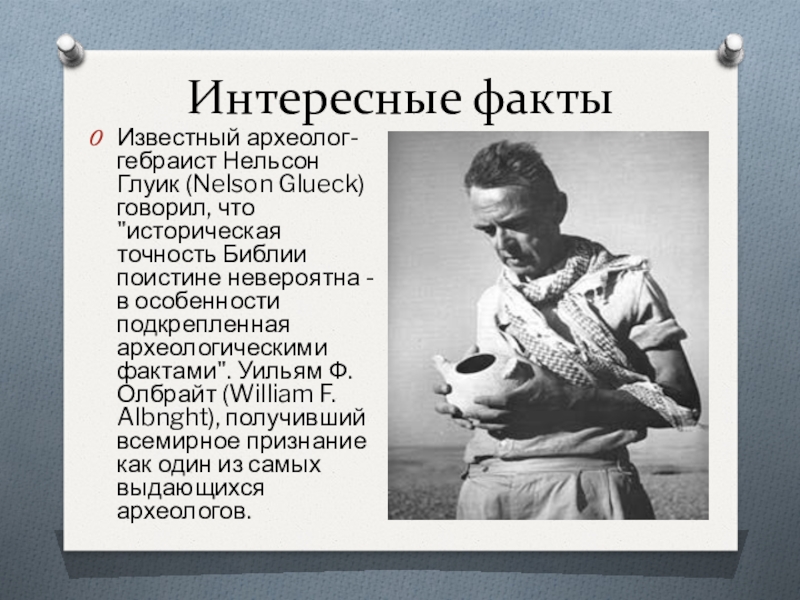 Библии поистине невероятна - в особенности подкрепленная археологическими фактами". Уильям Ф. Олбрайт (William F. Albnght), получивший всемирное признание как один из самых выдающихся археологов.