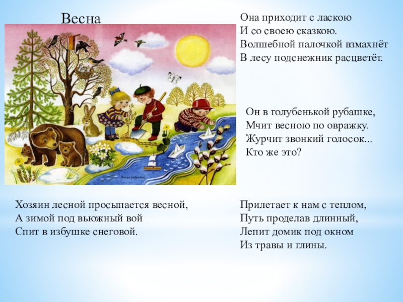 Хозяин лесной просыпается весной,