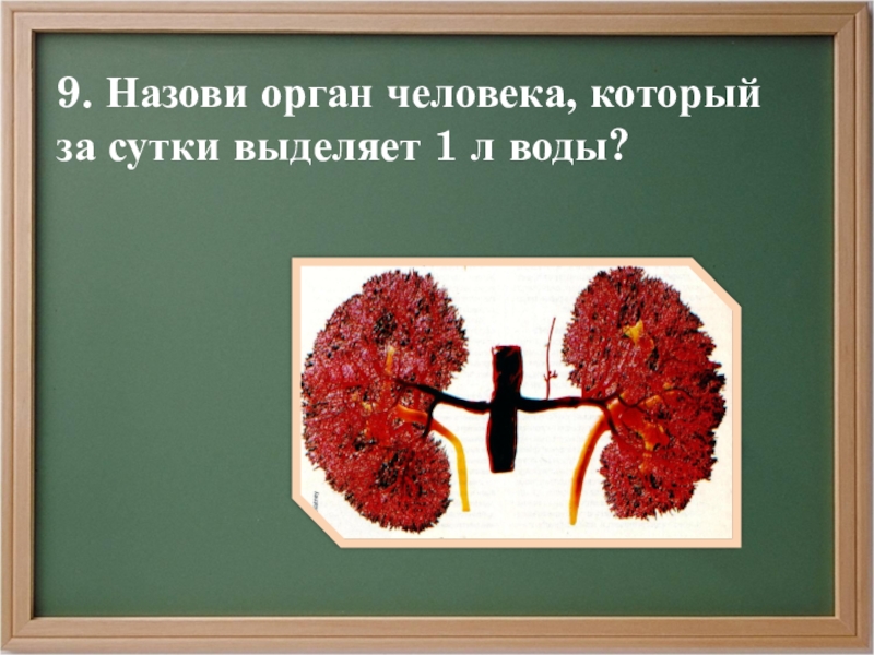 9. Назови орган человека, который за сутки выделяет 1 л воды?