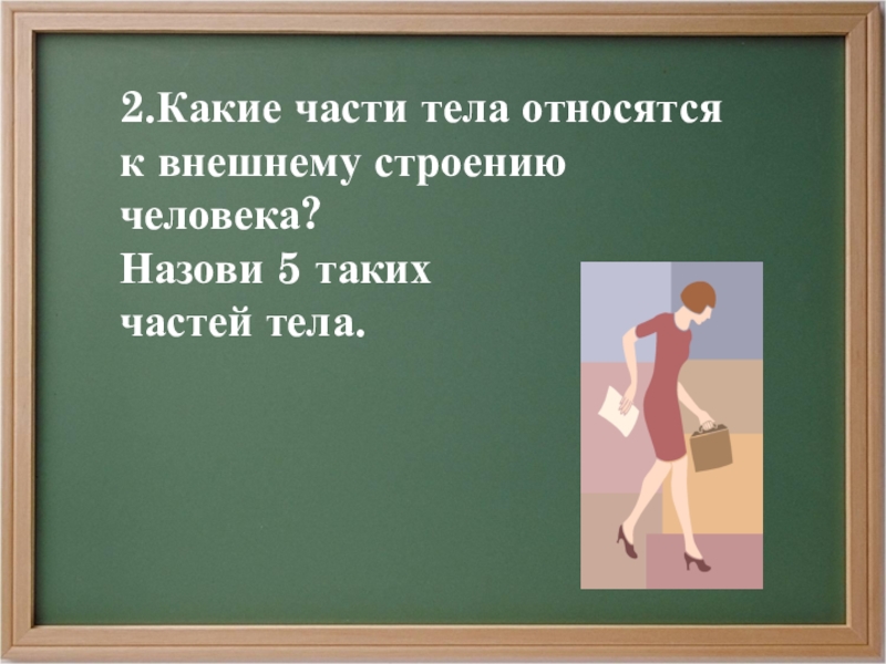 2.Какие части тела относятся к внешнему строению человека? Назови 5 такихчастей тела.