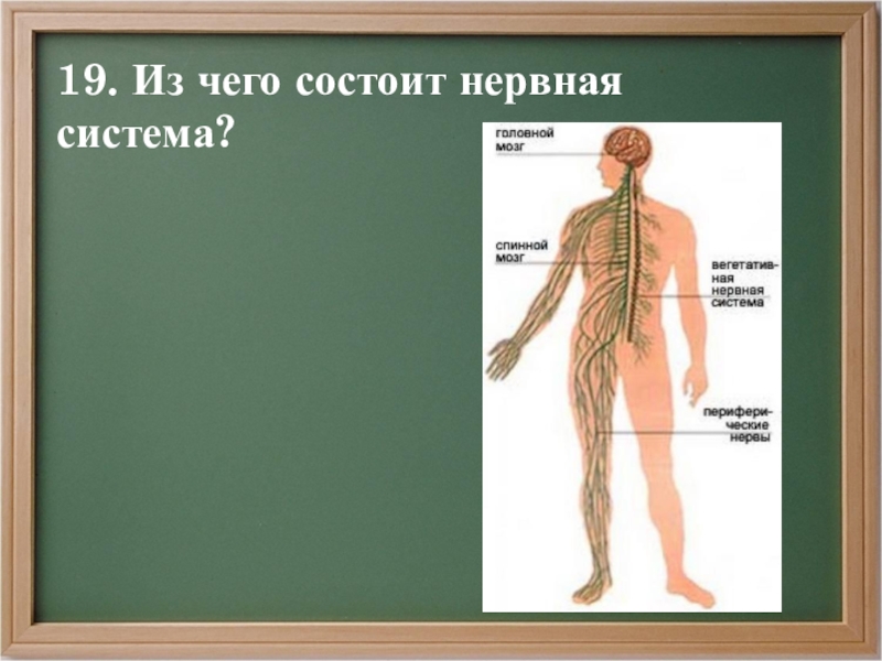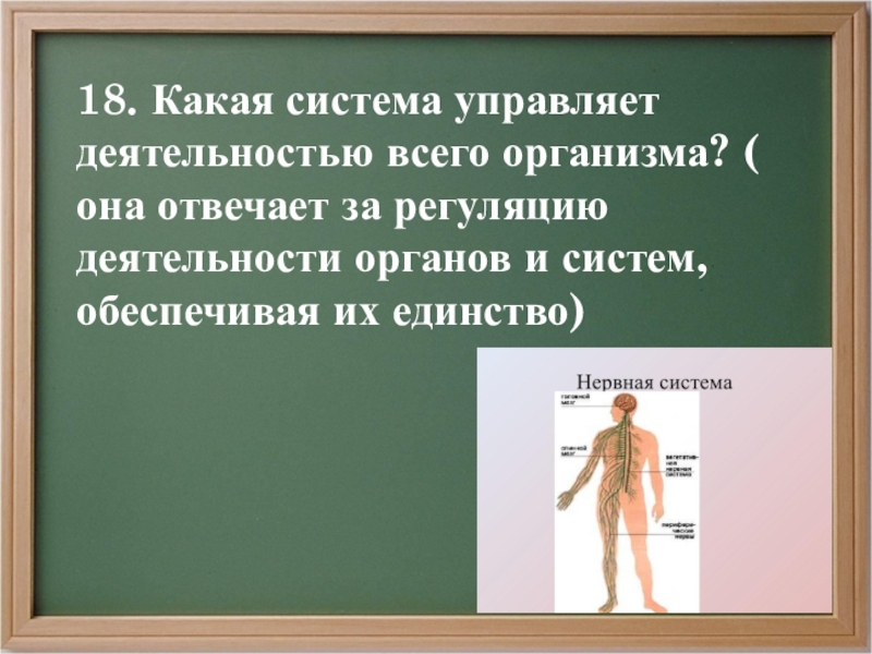 Слайд 1918. Какая система управляет деятельностью всего организма? ( она отвечает за