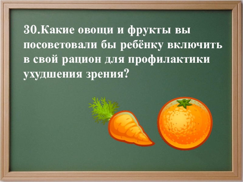 30.Какие овощи и фрукты вы посоветовали бы ребёнку включить в свой рацион для профилактики ухудшения зрения?