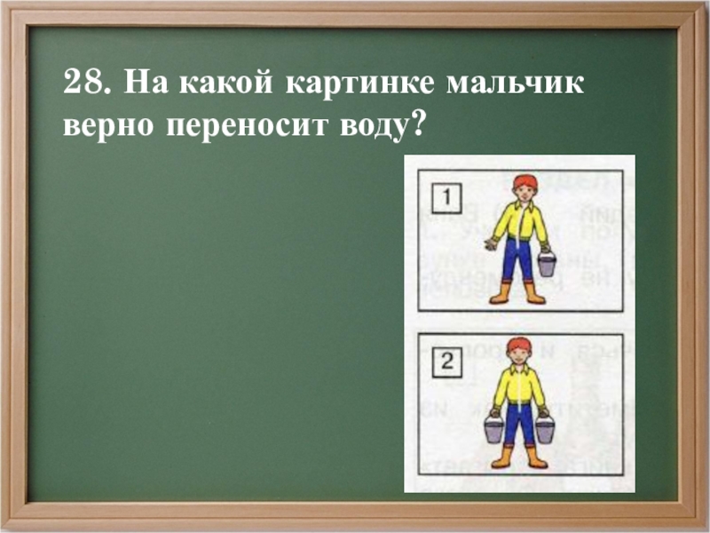 Слайд 2928. На какой картинке мальчик верно переносит воду?