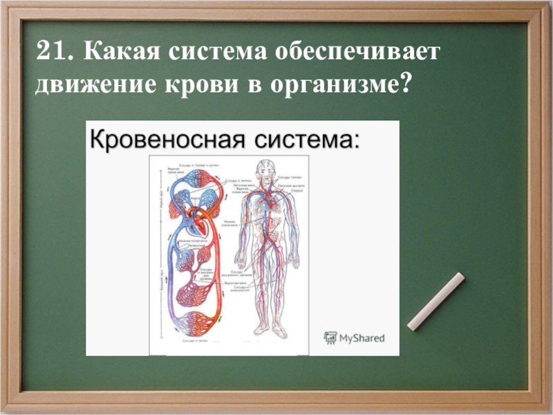Слайд 2221. Какая система обеспечивает движение крови в организме?