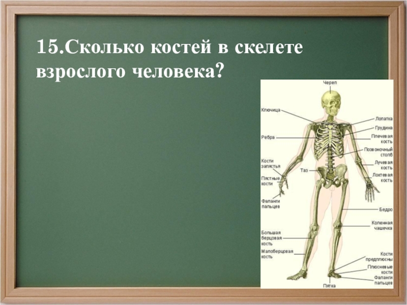 Слайд 1615.Сколько костей в скелете взрослого человека?