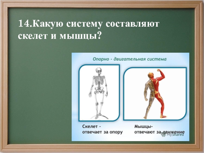 Слайд 1514.Какую систему составляют скелет и мышцы?