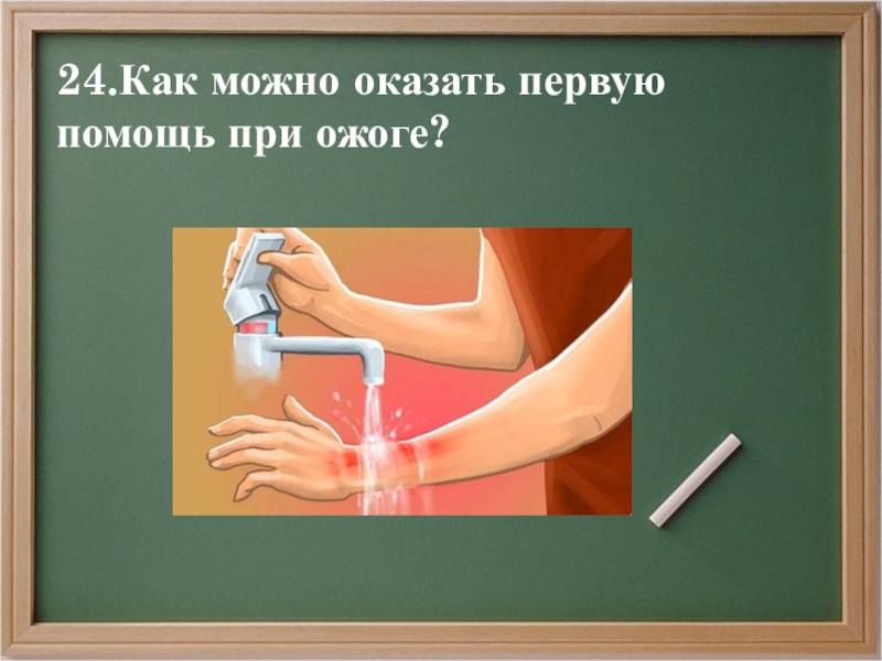 Слайд 2524.Как можно оказать первую помощь при ожоге?