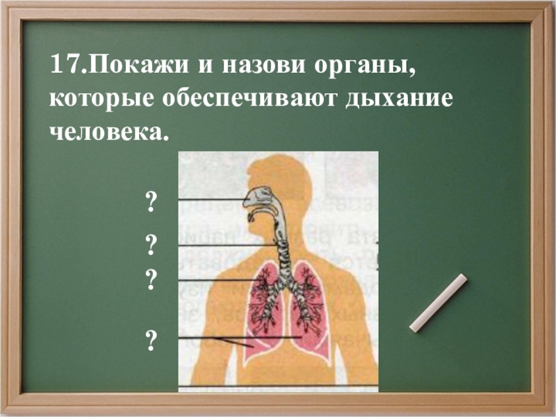 Слайд 1817.Покажи и назови органы, которые обеспечивают дыхание человека.