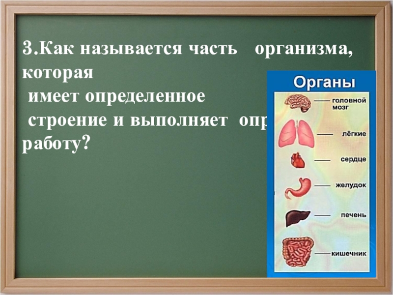3.Как называется часть  организма, которая имеет определенное строение и выполняет определенную работу?