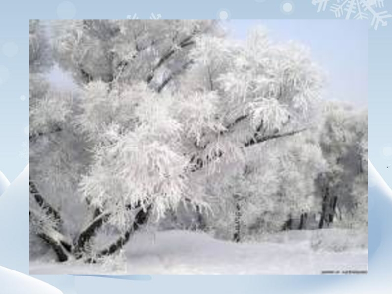 Слайд 3К высокой ели на заснеженном пригорке убегает от лисички пушистый зайчик.