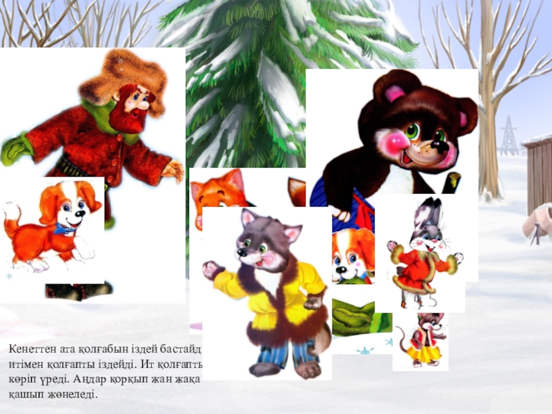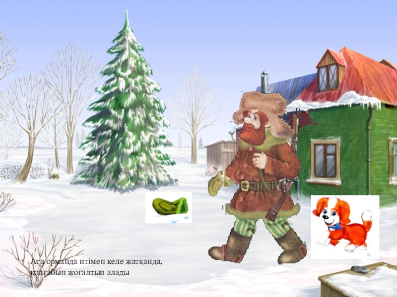 Слайд 2Ата орманда итімен келе жатқанда, қолғабын жоғалтып алады