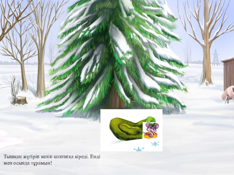 Слайд 3Тышқан жүгіріп келіп қолғапқа кіреді. Енді мен осында тұрамын!