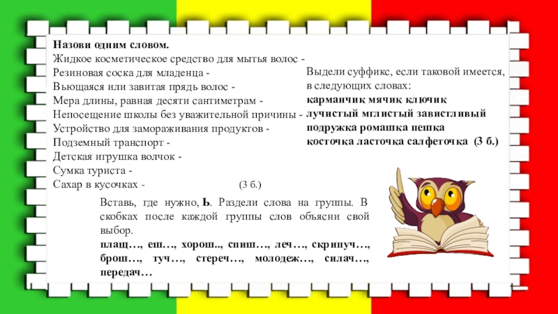 Вставь, где нужно, Ь. Раздели слова на группы. В скобках после каждой группы слов объясни свой выбор.