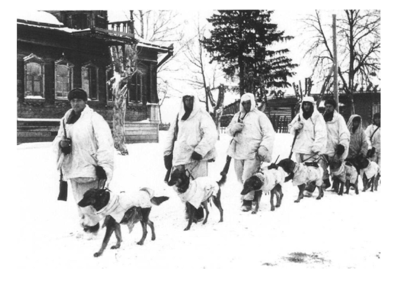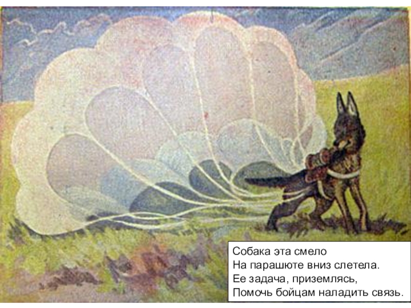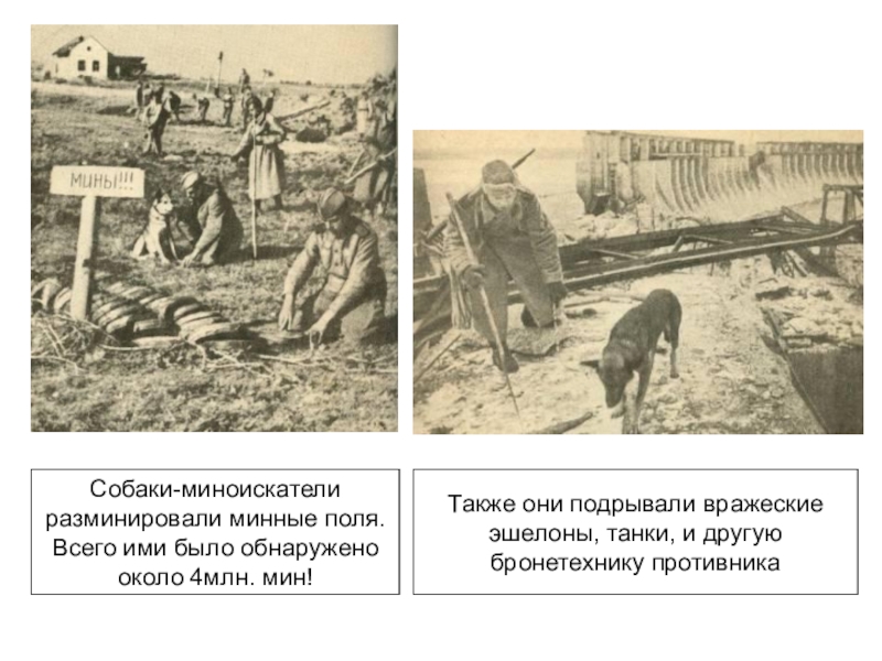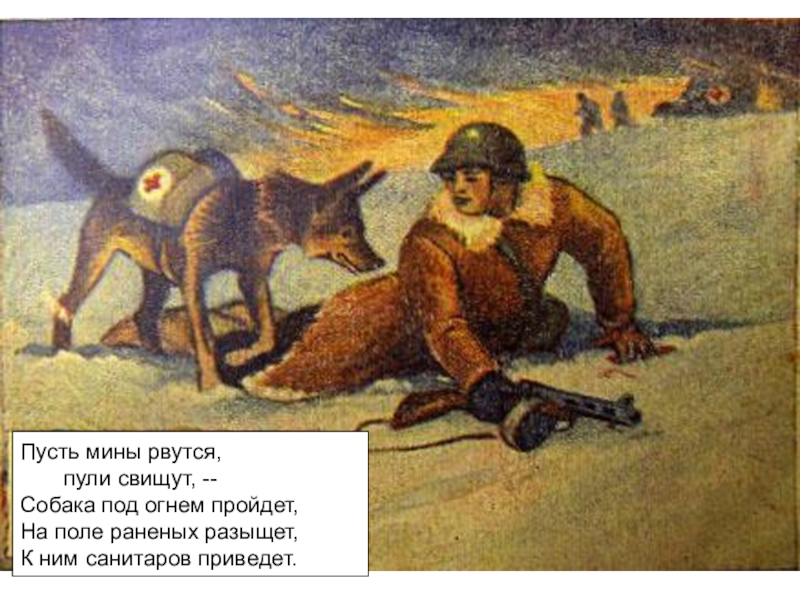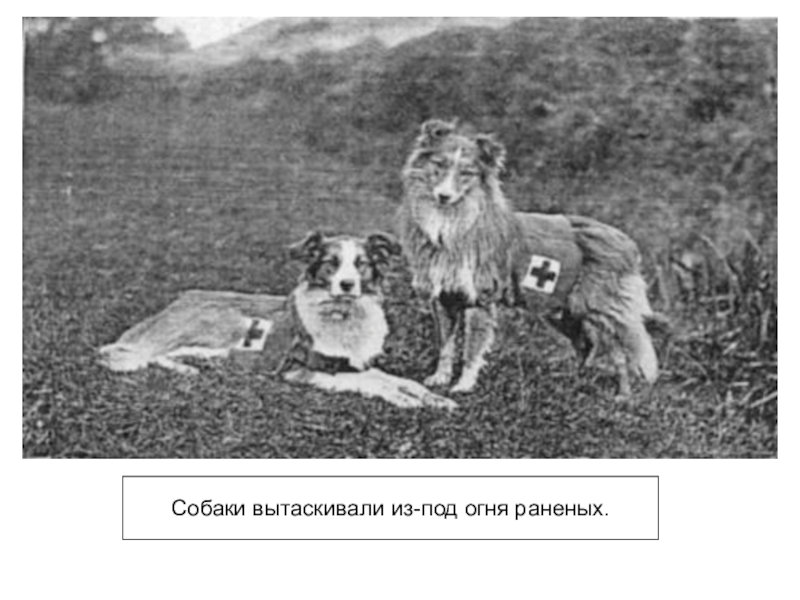 Слайд 11Собаки вытаскивали из-под огня раненых.