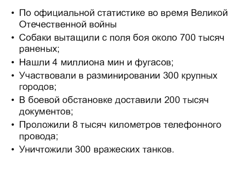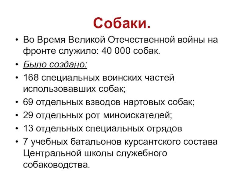Во Время Великой Отечественной войны на фронте служило: 40 000 собак.