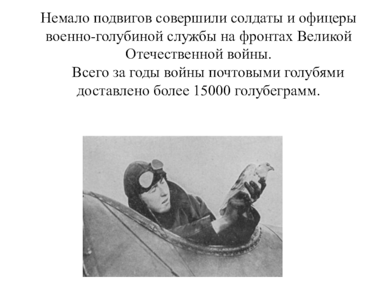 Всего за годы войны почтовыми голубями доставлено более 15000 голубеграмм.