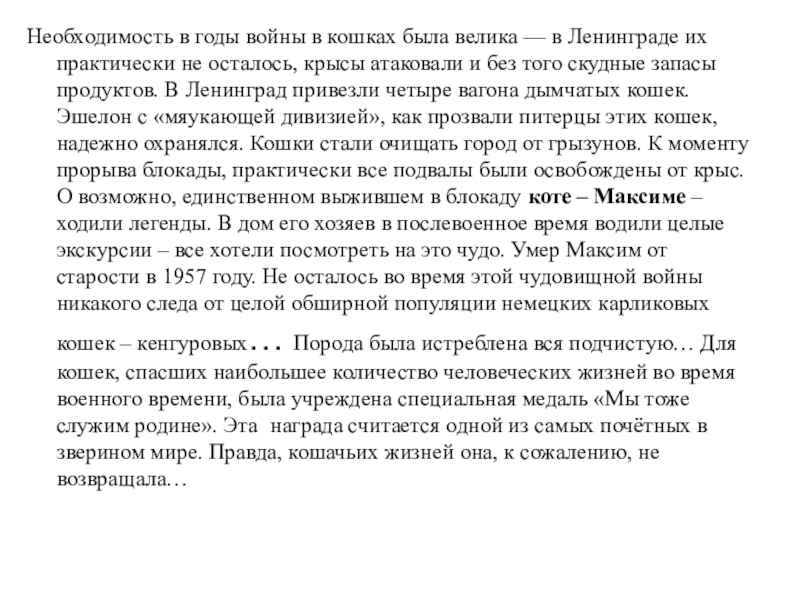 Слайд 23Необходимость в годы войны в кошках была велика — в Ленинграде