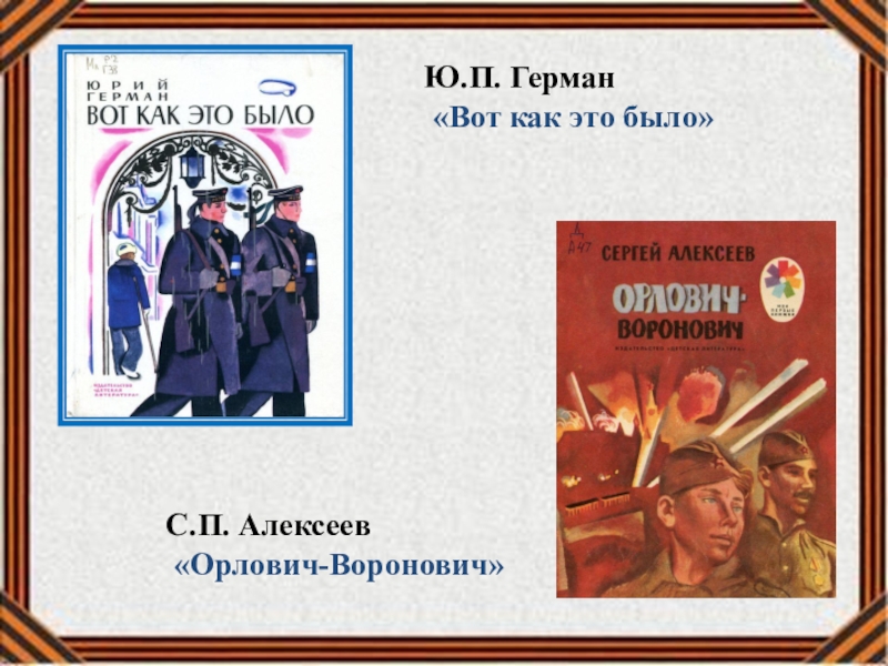 Ю.П. Герман «Вот как это было»С.П. Алексеев «Орлович-Воронович»