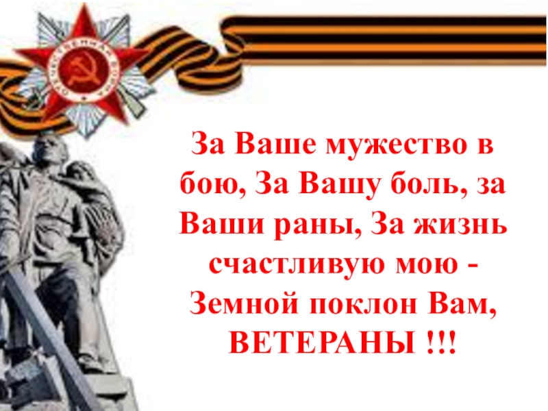 За Ваше мужество в бою, За Вашу боль, за Ваши раны, За жизнь счастливую мою -Земной поклон