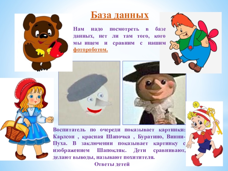 Нам надо посмотреть в базе данных, нет ли там того, кого мы ищем и сравним с нашим фотороботом.