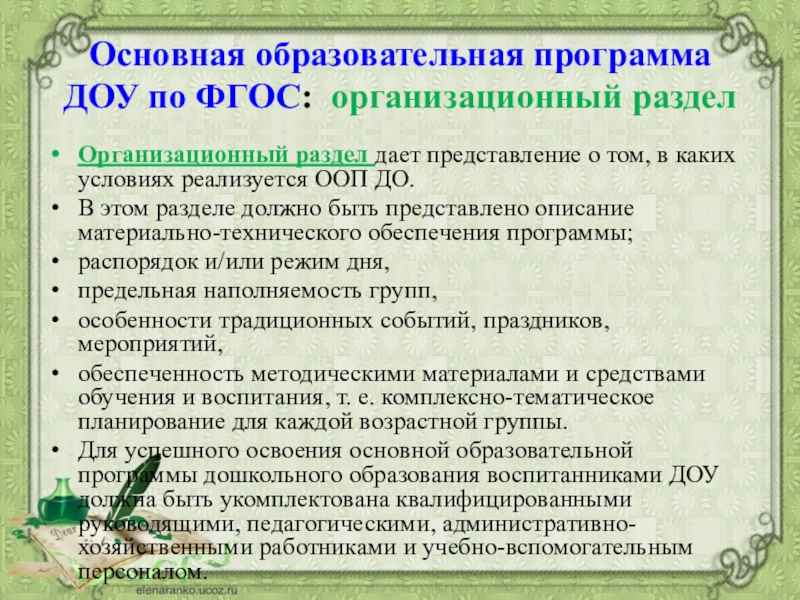 Слайд 7Основная образовательная программа ДОУ по ФГОС: организационный раздел