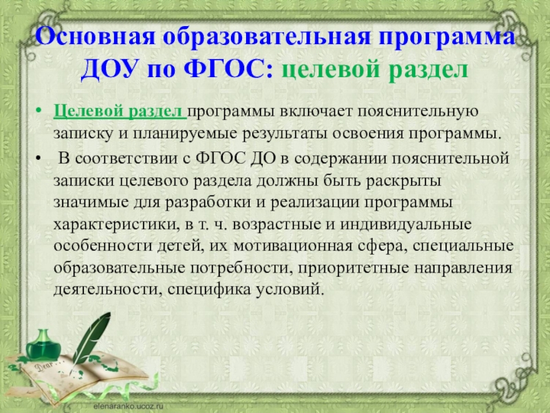 Слайд 3Основная образовательная программа ДОУ по ФГОС: целевой раздел